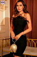 Super chic and simple. chic feather bandage dress is cut from our special stretchy crepe and fully lined for the smoothest of finishes. It has a bodycon fit to really create those curves and the feather top is beautiful. dramatic. and luxurious. It's properly boned internally to the front back and sides to really provide incredible support and an ultra-cinching effect