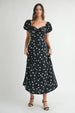 This polka dot puff sleeve midi dress is a charming and stylish choice for any occasion. The polka dot pattern adds a playful and timeless touch to the classic midi dress silhouette. The puff sleeves bring a romantic and elegant flair to the dress. making it a standout piece that can be dressed up or down with ease.