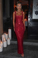 Indulge in luxury with the sparkle Maxi Dress in Silver. Red. and Black—crafted from premium stretch net with dazzling rhinestones. featuring a square neckline. low scoop back. and timeless maxi length for a show-stopping silhouette.