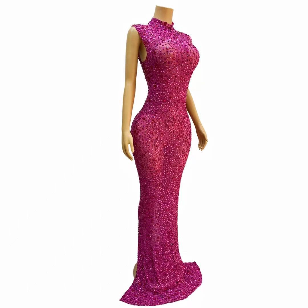 The Salene High Neck Rhinestone Maxi Dress combines elegance and glamour with its stunning rhinestone details and sophisticated high neckline. Made from 100% premium polyester. its flattering maxi length ensures you make a statement at any event. Perfect for special occasions. this dress exudes timeless style and luxury.
